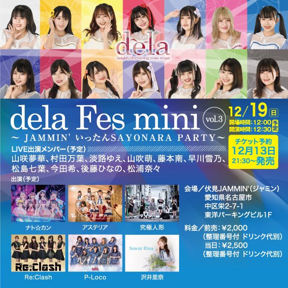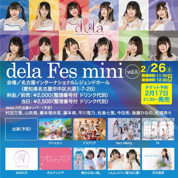 「dela Fes mini vol.4」 【日時】2022年1月22日(土)開場 12:00 / 開演 12:30 (予定) 【会場】名古屋インターナショナルレジェンドホール(〒460-0011 愛知県名古屋市中区大須…