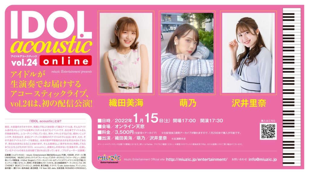 「IDOL Acoustic vol.24 online編」 ライブコーナー、トークコーナーを用意しております。小林秀樹さん、山岡恭子さんの生演奏あり!! 【日時】2022年1月15日(土)OPEN 17:00 / 配信…