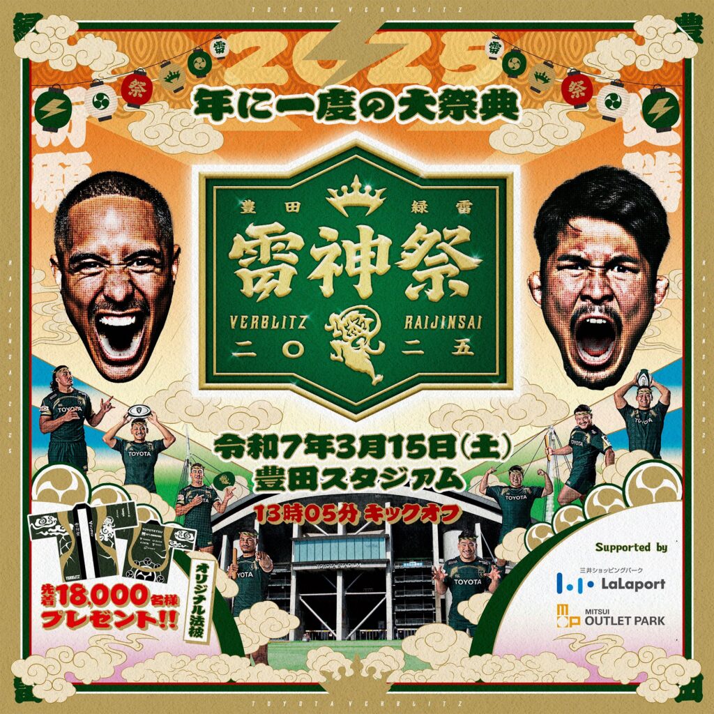 年に一度の大祭典「雷神祭」 雷神祭 場外ステージのMCを沢井里奈が務めます!! 【日時】2025年3月15日(土)10:40〜12:25 13:05 K.OVS 東芝ブレイブルーパス東京 【会場】豊田スタジアム 雷神祭 …