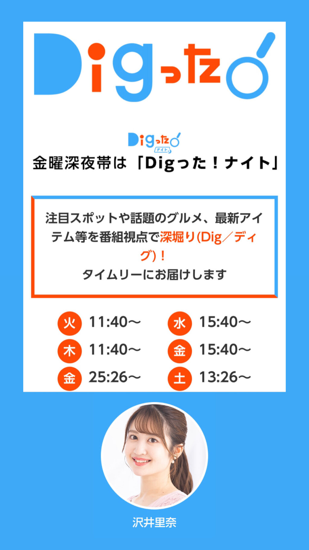 2024年10月25日(金)25:26〜メ〜テレ「Digった!ナイト」に出演致します。ぜひご覧下さい!! ◆番組公式サイトhttps://www.nagoyatv.com/digtta/