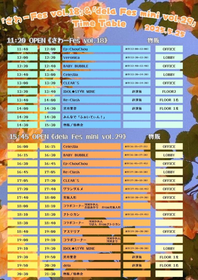 ※予告なく時間が変更になる場合がございます。